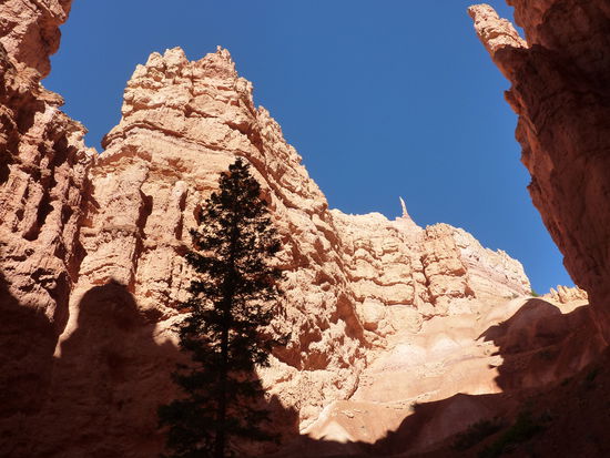 Nach endlosen Meilen nur sitzend können wir uns endlich einmal ein paar Stunden bewegen. Günter und ich sind daher schon sehr zeitig unterwegs um im Bryce Canyon herumzumarschieren. Außerdem müssen wir den blauen Himmel wirklich ausnutzen.
