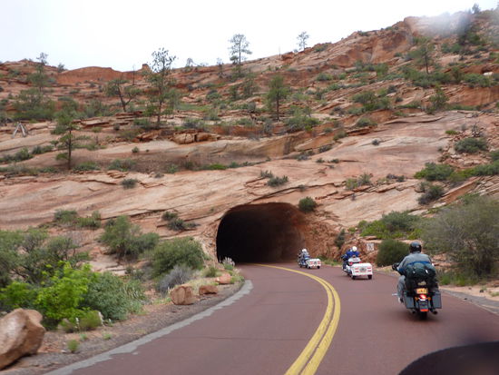 Dieser Weltuntergang dauerte geschlagene 10 Minuten, dann war der Spuck vorbei. Es regnete zwar noch und wir hatten eigentlich nichts vom Zion National Park, aber wenigstens gings nicht tusch, tusch, tusch auf dem Helm !!!