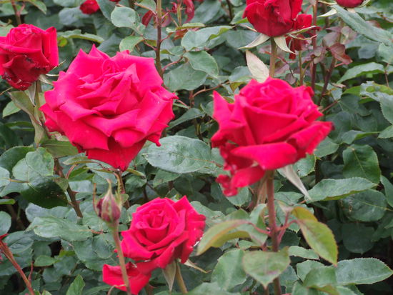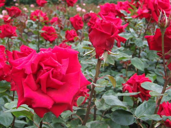 Sattsehen an der majestätischen Blume kann man sich kaum. Man fühlt sich erinnert an den heimischen Vorgarten, wo die Rosen ebenso ordentlich angeordnet waren, wie im Regents Park.