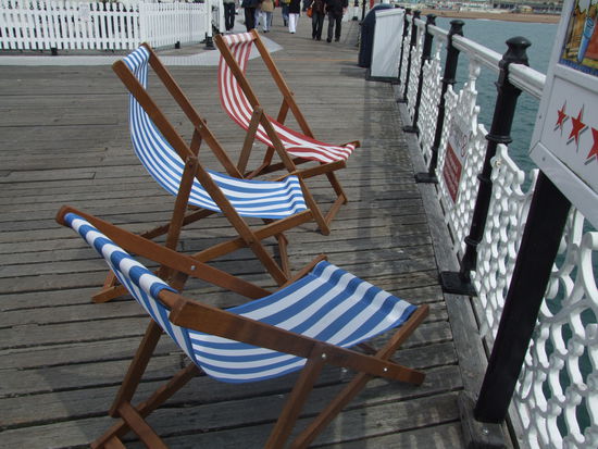 Sitzmöglichkeiten auf der berühmten Brighton Vergnügungspier, ein Relikt aus dem viktorianischen Zeitalter, gibt es viele, origineller lässt sich die frische Brise am Meer nicht genießen. Das Schöne in England, manchmal ändern sich die Dinge für einige von 100 Jahren nicht. Man kann sich vorstellen, wie die Victorians sich auf ihrer damals neu gebauten Vergnügungsbrücke amüsierten. Tradition ist alles in England und man vergnügt sich wie vor 100 Jahren fleißig weiter.