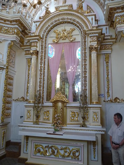 Nicht weit hinter der Vulkankette und nur wenige Km westlich von Puebla erreichen wir die Stadt Cholula.Hier steht die größte Pyramide der Welt mit 400 m Breite und 65 m Höhe.Sie wurde 7x überbaut und heute steht die von den Spaniern erbaute Kirche Nuestra Senora de los Remedios auf deren Gipfel.Im 7.Jahrhundert machten die Olmeken Cholula zu Ihren Zentrum,danach die Tolteken und dann seit dem 15. Jahrhundert die Azteken wo es ein heiliger Ort war.Heute ist die Pyramide überwiegend mit Gras bewachsen und nur von einer Seite freigelegt worden.Ein Tunnelsystem durchzieht die Anlage.Mit 39 Kirchengebäuden erhielt der Ort auch den Namen Stadt der Kirchen.