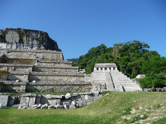 Palenque im Bundesstaat Chiapas gehört zu den bedeutensten Mayastädten die bis heute bekannt sind.Nach dem die Stadt wie viele andere im Urwald versunken ist wurde Sie vor ca. 150 Jahren wiederendeckt und seit dem erforscht.Bis heute sind erst ca. 20 Prozent freigelegt und erkundet worden.Das meißte liegt noch tief verborgen im Urwald.Seine Blütezeit hatte es vermutlich von 630 bis 740 unter dem Herscher Pacal desen reichverziertes Grab nach 1300 Jahren im Tempel der Inschriften gefunden wurde und heute im Anthropologischen Museum - Maya Haus zu sehen ist.Auch nach dem Tod von Pacal blühte die Stadt weiter nach dem es nach un nach mit der Mayastadt Tonina rivaliesierte.1994 endeckte man im Tempel XIII westlich dem Tempel der Inschriften einen weiteren Sarkophag aus dem Jahre 700 mit dem Skelett einer weiblichen Person mit Jademosaikmaske und Edelsteinschmuck.Ab 900 war Palenque verlasssen und verschwand im Dickicht.Bis heute hält die Tempelstadt Geheimnisse bereit.Erst vor kurzen wurden wieder neue Figuren und Fresken endeckt.Auf Grund des Feuchtheißen Klimas sollte man möglichst früh den Ort besichtigen da es sonst sehr schwühl werden kann.Insektenschutzmittel und viel zu trinken sollte man dabei haben da einen das Wasser aus dem Poren läuft auch ohne das man sich bewegt.Seit 1987 gehört Palenque zum Unesco Weltkulturerbe.