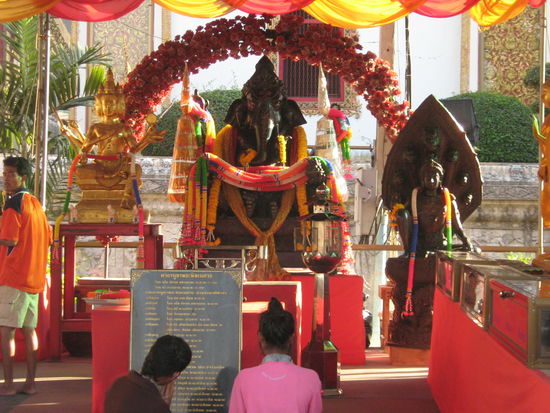 Als wir Mittwochs in Ayutthaya ankamen war es bereits Abends und der Tag gelaufen. Hatten Glück und eine relativ günstige und schöne Unterkunft gefunden. Am Donnerstag haben wir uns ein wenig in der Stadt umgesehen und ein paar Ruinen und Wats angesehen. Abends waren wir schön essen und danach gabs Bescherung. Habe einen wunderschönen weißen Pashminaschal (einen echten) und einen süßen kleinen silbernen Elefantenanhänger bekommen. Somit wurde die Anhänger-Sammlung um meinen Hals wieder erweitert.