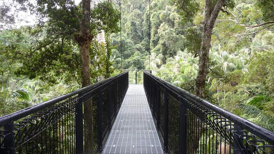 Auf den Weg nach Brisbane haben wir noch einen kurzen Stopp eingelegt. Beim "Temporine Skyewalk". Ein Stück Regenwald-Luft schnuppern. Und was wäre ein Spaziergang im Regenwald, ohne Regen?! Natürlich fing es nach der Ankunft gleich an zu regnen...