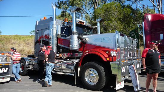 An manchen Wochenenden gibt es hier auch immer mal so tolle Volksfeste, auf denen sich Philipp dann so richtig wohlfühlt.... wie auf diesen mit einer Ausstellung an "richtigen Aussie-Trucks". Die deutschen LKW's sind dagegen Spielzeug.