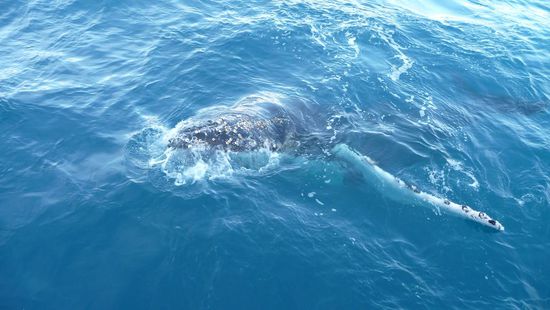 Es war eine Halbtages Tour und startete 13.30. Es ging mit einem kleinen Boot raus aufs Meer und wir hielten an etlichen Buchten an und die Wale kamen....Es war echt unglaublich diese riesen Tiere so nah zu sehen.