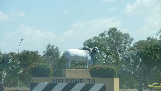 Nach diesem schönen Tag im Paradies, ging es weiter auf dem Highway. Als nächstes durchquerten wir die Region um Rockhampton. Ein kurzer Stopp in der Stadt Rockhampton, welche auch bekannt ist als "Rinderhauptstadt" war natürlich auch drin. Schon beim Reinfahren, blickte uns eine riesen Kuh an und es folgten weitere.
