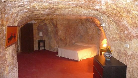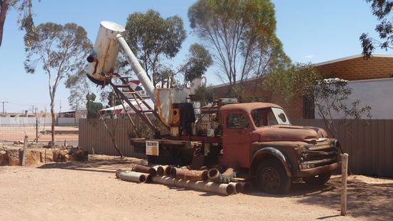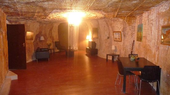 Dies ist die größte Opalregion der Welt. Hier wird er heut noch in Schwerstarbeit gesucht und abgebaut (auch wenn die Anstrengung nur noch ca. einem Drittel gegenüber den Anfangstagen beträgt). Da es in diesem Ort nahezu ganzjährig deutlich über 30°C sind, leben die Leute unter der Erde, in sog. Dugouts, welche ganzjährig eine Temperatur ~23°C beibehalten. Die Stadt ist mit unzähligen Opal-Shops übersäet (unter- und oberirdisch!) und eigentlich. Restaurants, Kirchen, Hotels einfach alles wurde hier in Fels gehauen....