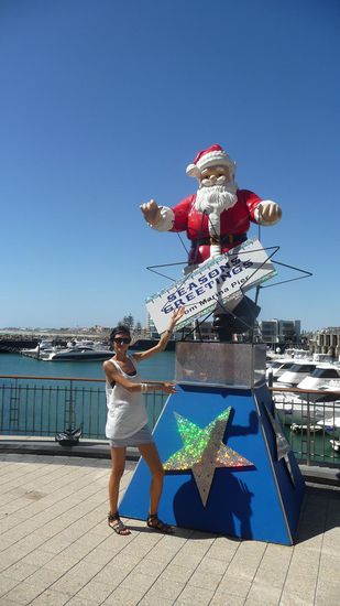 Und nun schon wurde es auch Weihnachten...Dieses Jahr mal eine andere Art zu feiern...Anstatt Schnee gab es 35°C Sonnenschein und der Weihnachtsbaum steht hier neben Palmen.