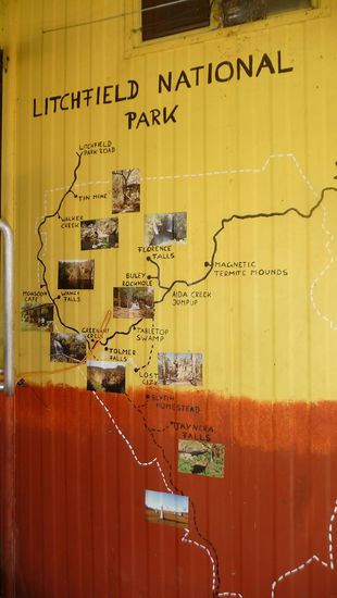 Am Donnerstag ging dann die 3 tägige Tour zum Lichtfield und dem berühmten Kakadu Nationalpark los. Da es ca. 3 Stunden Fahrt waren, startete die Tour schon 6.30 Uhr....aber wir konnten ja unterwegs noch etwas schlafen. Unsere Tour bestand aus 10 Leuten. 2 Engländerinnen, 2 Holländerinnen, 2 Australiern, einem Schweizer (aber aus dem französischen Teil der Schweiz) und 3 Deutschen (wir plus einem aus Gotha). War aber eine ganz lustige Runde.