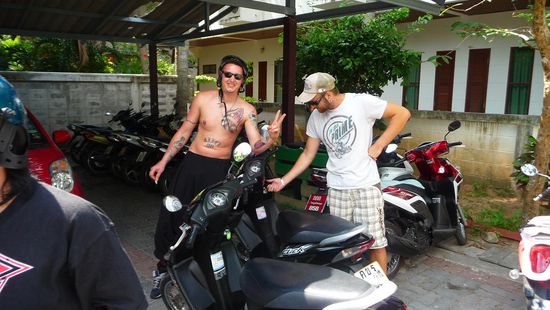 So sahen also unsere ersten gemeinsamen Abende aus. Aber um auch was Kulturelles von der Insel kennen zu lernen. Und nicht nur die einheimischen Alkoholsorten. Haben wir uns ein paar Motorbikes ausgeliehen, um die Insel auf eigene Faust zu erkunden. Die Jungs sind gefahren und Nadine und ich nahmen dahinter Platz.
