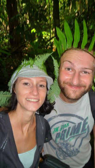 Um 9Uhr ging es los mit einer 45 minütigen Fahrt Richtung Gua Musang, denn dort gab es die berühmte "Rafflesia" - die größte Blume der Welt - zu sehen. Bevor das Trekking startete bastelte uns unser Guide noch eine hübsche Kopfbedeckung.