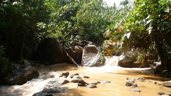 Weiter ging es zu einem Wasserfall mitten im Dschungel. Da es aber einen Tag zuvor geregnet hatte, war das Wasser leider nicht wirklich klar und lud nicht wirklich zum Baden ein