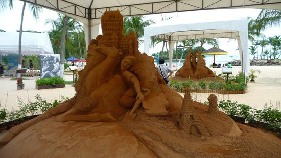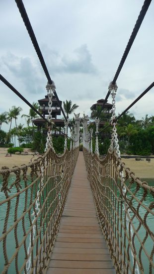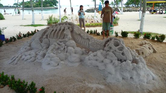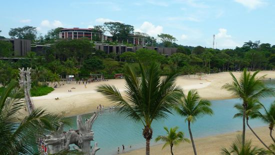 Der Ort an dem sich gestresste Singapurer zum Relaxen zurückziehen. Leider waren wir von dieser Insel etwas enttäuscht, denn alles wirkt einfach nur sehr künstlich. Wie schon gesagt hat Singapur die Einstellung "Big is Better" und somit wird diese ursprünglich unberührte Insel total verbastelt. Von den Dingen, welche in unserem Reiseführer (von 2005) stehen, ist nahezu nichts mehr übrig, zumindest nicht mehr in der Ursprungsform. So findet man hier nun Resort World, Singapur Universal Studios Theme Park, das weltgrösste Ozeanarium (derzeit noch im Bau) usw. (alles natürlich mit Eintritt verbunden)...und die für Sentosa so berühmten rosafarbenen Delphine wurden aus ihrer natürlichen Bucht gefischt und schwimmen nun im komplett künstlichen Pool in Underwater World und müssen für Touri-Shows herhalten. Selbst die Strände wurden von Maschinen in Form gebracht und künstlich aufgehübscht. Mein Tipp - spart euch einen Besuch auf der Insel...