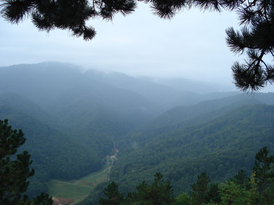 Die Bewegung tat ganz gut und im Wald merkte man den Nieselregen kaum. Von oben hatte man dann einen guten Ausblick ueber die Stadt und die Ebene davor und die beginnenden Karpaten dahinter.