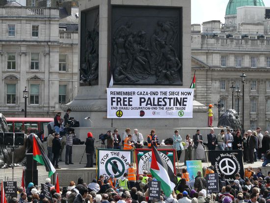 In deren Vorplatz war eine Kundgebung zum "Freien Palästina".