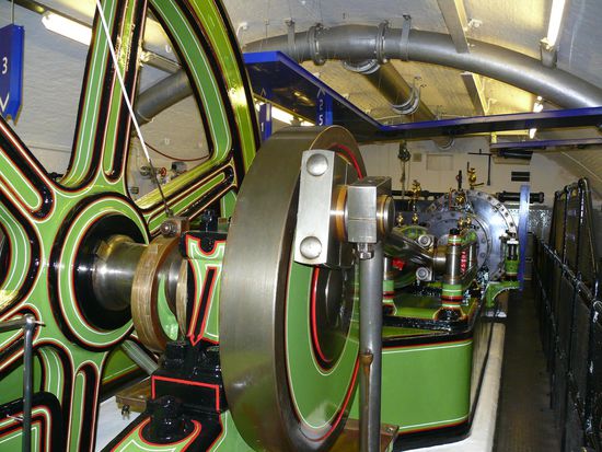 Nach einigen Panoramafotos gehen wir dann in den Maschinenraum, wo die alten Aggregate fein herausgeputzt zu bestaunen sind. Einige sind zu Demonstrationszwecken elektrisch angetrieben.