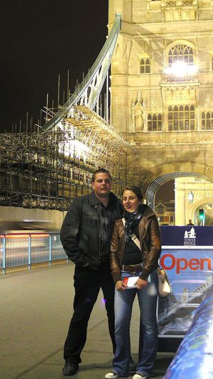 Nach etlichen "Cider´n" machen wir uns dann weit nach Mitternacht auf den Weg zu unserer Schnapsidee vom Vormittag. Egal wie, wir wollten nachts noch mal zur Tower Bridge, um ein gemeinsames Erinnerungsfoto zu schießen. Ehe ich mich versehe und wir aus dem Pub gehen springt Irina in einen Bus. "Ich will jetzt Bus fahren" ruft sie. Ist ja auch die einzige Alternative neben dem Laufen, da alle U-Bahnen bereits geschlossen haben. So fahren wir, siehe da, von einem Viertel ins nächste. Nur nicht Richtung Tower Bridge oder Hotel. Nach einer Stunde Irrfahrten mit etlichen Buslinien mache ich dem Treiben ein Ende und halte ein Taxi an. Die Taxis sind nicht nur unglaublich schön, sondern auch echt geräumig. So fahren wir durch die halbe Stadt bis zur Tower Bridge.