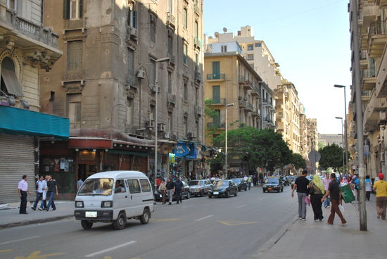 So, genug über´s Hotel geschwärmt. Raus auf die Strassen Kairos ! Der Verkehr ist chaotisch, klar. Wie sollte es anders sein in einer nordafrikanischen 20-Millionen-Metropole ? Strasse überqueren geht nur nach dem "Vietnam-Prinzip": Augen zu und rüber, nicht zögern, nicht stehenbleiben, nicht die Geh-Geschwindigkeit verändern, dann wissen die Autofahrer Bescheid und sortieren sich um einen herum. Selbst, wenn man ein Auto aus dem Augenwinkel heranrasen sieht und man denkt "der fährt Dich über den Haufen", Ruhe bewahren und stetig weitergehen. Am Straßenrand wird´s dann wirklich eng, denn zwischen den geparkten Autos sind oftmals keine 2 cm Platz. Bauch einziehen und durchquetschen lautet die Devise ! Wo will ich eigentlich hin an diesem ersten Spätnachmittag ? Ich weiss es auch nicht, einfach nur so herumlaufen, die Atmosphäre der Stadt aufsaugen, ein bisschen orientieren, keine Ahnung. Nur mal sehen, wie Kairo so "tickt". Grobe Richtung: Nil. Was hatten sie mich doch alle gewarnt, die "Ägypten-Experten" in meiner Heimat: Anmache und Nepp überall und ohne Ende ! Und was war ? Nichts, nothing, nada.