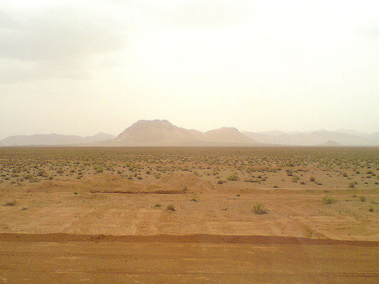 Ein Taxi bringt mich zum Terminal Kaveh. Der freundliche Herr an der Reception hat gestern für mich die Abfahrtszeiten nach Shiraz erfragt und mir einen Platz reservieren lassen. Der Bus fährt um zehn, gut zu wissen, dann reicht es, wenn man wenige Minuten vor der Abfahrt da ist und braucht nicht lange zu warten. Die Fensterscheibe ist dreckig, sodass man überhaupt keine schönen Fotos machen kann. Noch dazu ist der Himmel heute bewölkt. Gegen jegliche Regeln, die ich in anderen orientalischen Ländern kennen gelernt habe - in Jordanien stieg ich mal gegen zehn in einen Bus, der dann erst um elf losfuhr, als auch der letzte Platz besetzt war. Andere Mitreisende erzählten, dass der Bus eigentlich schon um 8 Uhr hätte losfahren sollen - startet unser Bus, obwohl wir nur halb besetzt sind, ganz pünktlich. Auf autobahnähnlichen Straßen verlassen wir den pulsierenden Trubel der Stadt steil in die Berge hinauf. Da die Fenster auf der anderen Seite sauberer sind und eh genügend Platz da ist, setze ich mich um. Wir umfahren halb Isfahan und dann wird mir plötzlich klar, warum wir halbbesetzt losgefahren waren: Nach einer guten dreiviertel Stunde steuert der Fahrer den Südterminal an, wo weitere Fahrgäste zusteigen. Zum Glück hat niemand den Platz reserviert, auf den ich mich gerade gesetzt habe. Im Fernsehen läuft irgend ein iranischer Film. Die Land- schaft ist ähnlich wie die zwischen Teheran und Isfahan. Weite wüsten- ähnliche Flächen, die in der Ferne durch raue, vegetationslose Gebirgs- züge, die fast an den Sina'i erinnern, begrenzt werden, ziehen kilometer- lang draußen vorbei. Weiter im Süden geht es Mitten durch eine Berg- landschaft mit satterem Grün, wahrscheinlich regnet es hier ab und zu. Sogar niedere Büsche gedeihen. Immerwieder stehen Polizisten am Straßenrand, die scheinbar nichts besseres zu tun haben, als Jagd auf Verkehrssünder zu machen. Nirgendwo sonst habe ich so viele Blitzer gesehen, wie im Iran.