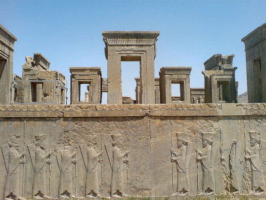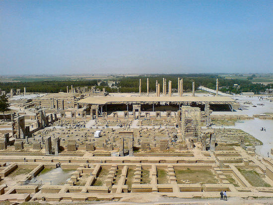 Die Persepolis oder Takht-e Jamsheed, Thron des Jamsheed, wie die Perser sie nennen, ist jene Stadt, die Darius im Jahre 515 v.Chr. am Fuße des Kuh-e Rahmat, dem Berg der Gnade, auf einer künstlich angelegten Terrasse erbauen ließ. Die Pracht der eindrucksvollen Gebäude, die mit Hilfe lydischer Architekten erbaut wurden, sollte die Weltherrschaft des Achäminidenreiches sinnbildlich demonstrieren. Darius' Nachfolger Xerxes und Artaxerxes vollkommneten die Anlage, indem auch sie ihre Paläste hier bauten.