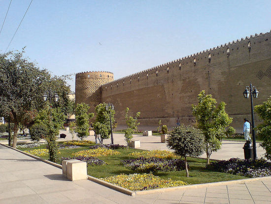 Die alte Festung Arg-e Karim ist aus Lehmziegeln gebaut. An jeder der vier Ecken wird sie durch einen runden Turm verstärkt. An einer Seite ist der Untergrund abgesackt, sodass der Turm eine starke Schieflage hat und somit an den Schiefen Turm von Pisa erinnert. Über dem Eingang der Burg ist ein Bild aus Fliesen von Rostam, dem Helden des Shahmaneh. Hinter den Mauern befindet sich ein Garten, mit Zitrusbäumen, ein altes Badehaus, eine Fotoausstellung mit historischen Bildern der Stadt und einen Raum mit lebensgroßen Puppen, die eine Szene darstellen, wie es in der Festung damals so war.