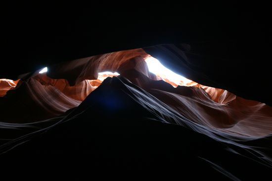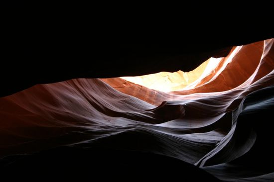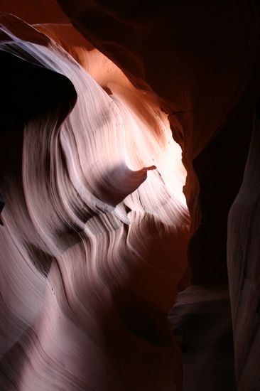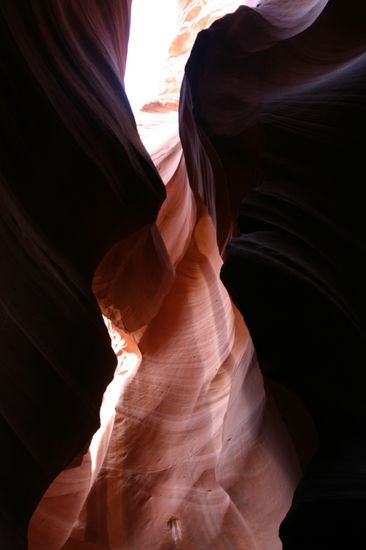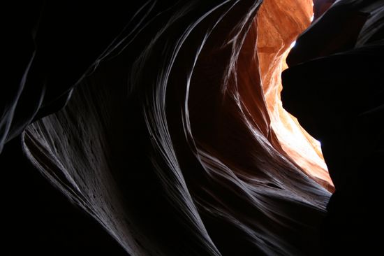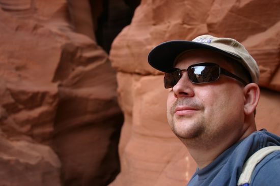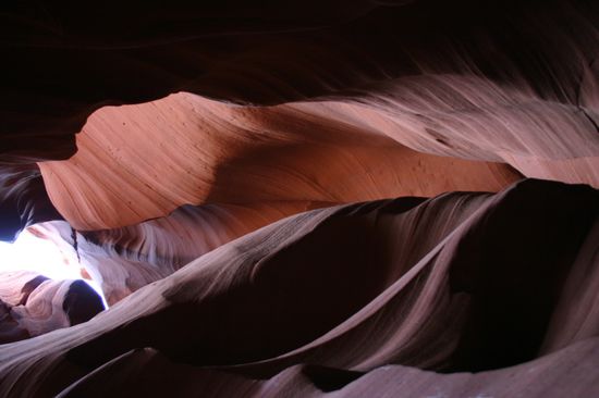 Wir wollen heute in Page/Arizona übernachten und den Antelope Canyon besuchen, einen Slot Canyon. Bei der Fahrt von Utah nach Arizona müssen wir unsere Uhr um eine Stunde nach vorne stellen. Zwar hat Utah die gleiche Zeitzone wie Arizona, aber Arizona hat keine Sommerzeit. Da wir aber aus Page zurück zum Gebiet der Navajos fahren, müssen wir unsere Uhr gleich noch mal umstellen, denn die Navajos haben in ihrem Reservat eben doch Sommerzeit. Das kann schon mal sehr verwirren, wenn es darum geht, ob wir die letzte Tor noch bekommen oder nicht