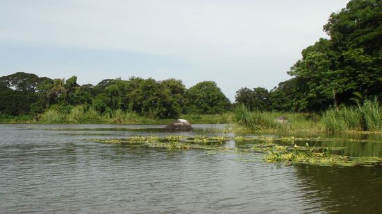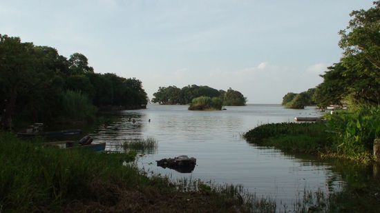 An der Bootsanlegestelle konnte ich nur staunen: wie gross der Nicaraguasee ist, und kaum vorstellbar dass hier Suesswasserhaie schwimmen!!Wir fuhren an winzigen Inselchen vorbei, im Wasser waren viele Seerosen und wir konnten viele Voegel beobachten. Vom Boot aus konnten wir einen tollen Blick auf den Vulkan Mombacha geniessen.  An einer groesseren Insel legten wir an und gingen ein bisschen wandern, an einer anderen konnten wir Affen beobachten. Ploetzlich sprang einer auf unser Boot, das gab ein Geschrei