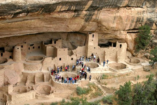 Blick in den "Cliff Palace" einmal ohne eine Besuchergruppe, einmal mit geführten Interessierten.