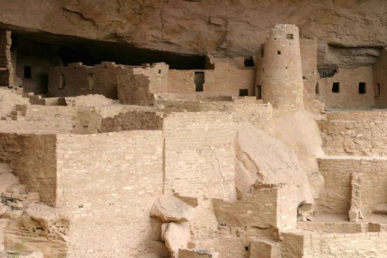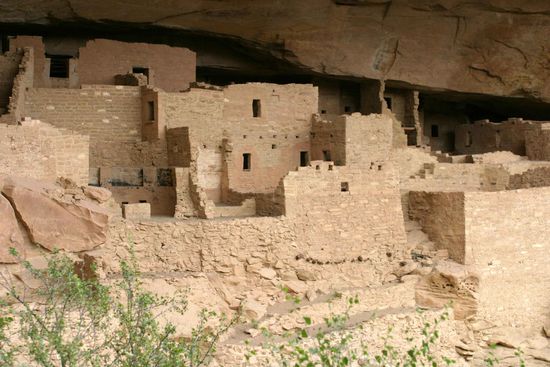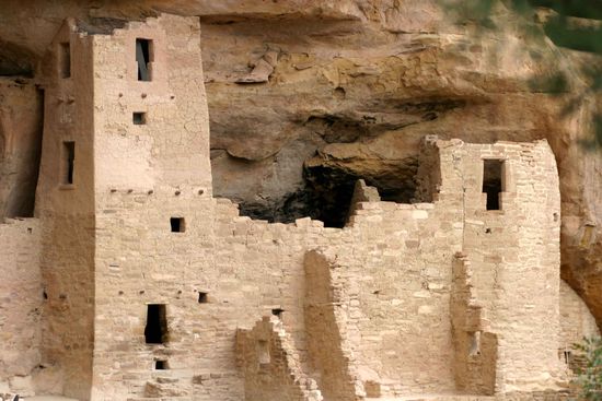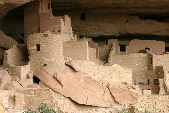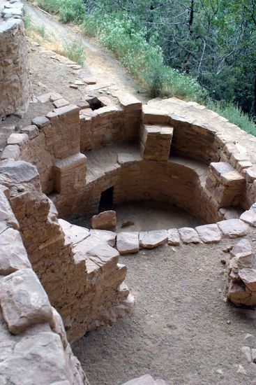 Diese Vertiefung, genannt Kiwa war wohl ein Wohnraum mit Zu- und Abluftöffnungen die der Temperierung dienten. 23 solcher Rundräume gibt es im Cliff Palace. Das Dach aus Holz ist im Laufe der Zeit verfallen.