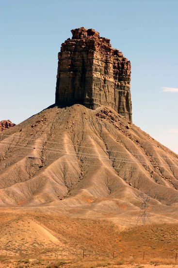 Links und rechts der Strasse zeigten sich Wind und Wetter trotzende Felsmonumente in der ansonsten recht flachen Landschaft.