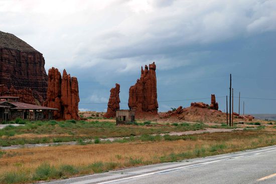 Wir verließen "Mesa Verde", unseren ersten Nationalpark und fuhren zurück auf die "160". Cortez passierten wir um ca. 15 Uhr. Wenn wir einen schönen Campingplatz gefunden hätten, vermutlich hätten wir hier übernachtet. Die Temperaturen bei bedecktem Himmel waren mit 28 ° bis 30 ° Celsius recht angenehm.