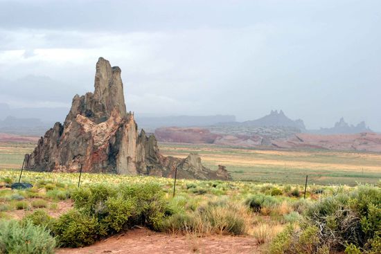 Die Weiterfahrt über ging über "Tec Nos Pos", Mexican Water nach Kayenta zum Parkeingang des "Monument Valley". Auf der Strecke passierten wir viele schöne Felsformationen, die jedoch immer mehr im Nebel, Dunst und schlussendlich im Regen verschwanden.