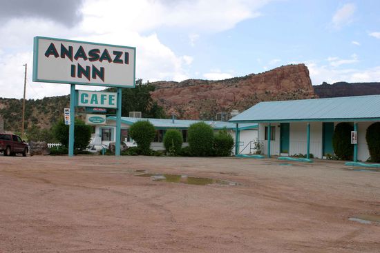 Das "Anasazi Inn" hatte gerade noch 2 Zimmer frei. Da fragt man lange und nicht viel. Eines davon - es hatte drei Betten - nahmen wir. Das indianische Essen hier machte uns allerdings nicht an. Nachdem wir Quartier bezogen hatten