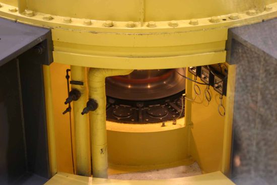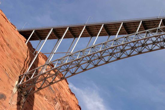 Die Stahlbetonmauer die den Colorado River zum Lake Powell aufstaute hat eine Höhe von 213 m vom Felsgrund an der Sohle bis zur Mauerkrone. Die Länge der Dammkrone beträgt 475 m.