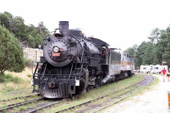 In einer historischen Dampfeisenbahn können sich nicht ganz so eilige Touristen ein kurzes Stück an der Grand Canyon Schlucht entlang fahren lassen.