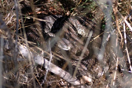 Keinen Meter vor meinem Fuß hielt die Klapperschlange ihren Verdauungsschlaf.