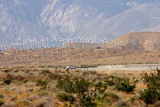 Warum Kalifornien bei der Herstellung von Alternativ-Energie weltweit führend ist sahen wir bei Whitewater. Die Landschaft war übersät mit Tausenden und Abertausenden von stromproduzierenden Windrädern.