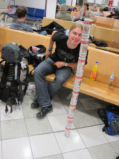In Gatwick angekommen hiess es dann abwarten (17 Std.) und Bier trinken.