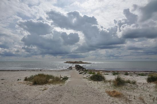 Erholt und endlich wieder mal ausgeschlafen fahren wir nach Arlid, ein buntes Fischerdörfchen. Mit gütigem Wind gelangen wir nach Mellbystrand. Hier trifft man auf die längsten Sandstrände Schwedens. Leider regnet es aber mittlerweile. Wir schlagen unser Nachtlager auf, ohne uns ganz sicher zu sein, ob wir das hier auch dürfen. Am nächsten Morgen treffen wir prompt nach kurzer Strecke auf das vermeintliche Schild Naturschutzgebiet, Zelten verboten, ups, dem Schlaf hats nicht geschadet und ordentlich sind wir ja auch!