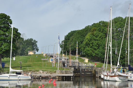 Zurück auf der Route des Götekanals bildet die Ortschaft Berg für uns die letzte Station. Hier sind die 7-stufigen Schleusen zu bewundern, die einen Höhenunterschied von 19m ausmachen! Amüsantes Spektakel den Touris beim Schiffe festmachen zuzusehen!?!