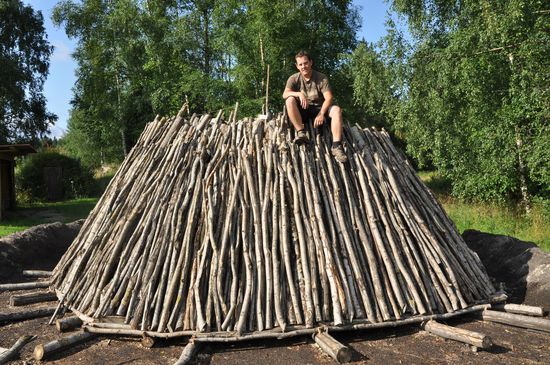 Bis es aber so weit war, mussten wir noch ein paar Kilometer pedalen und da kamen wir auch noch an einem vorbereiteten Köhler vorbei. Hier wird durch eine lange und aufwendige Prozedur Kohle gewonnen.