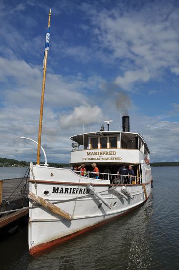 Mit der s/s Mariefred, einem Dampfschiff von 1903, fahren wir 3,5h bei schönstem Wetter nach Stockholm.