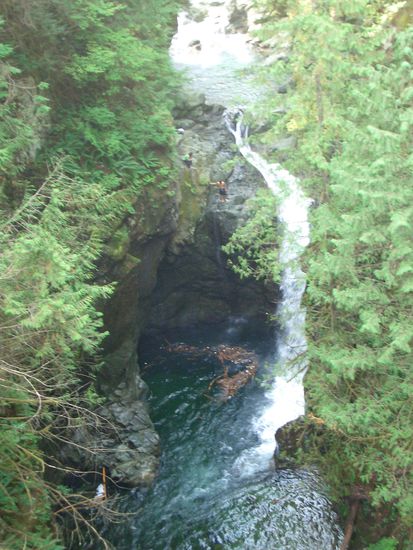Danach mache ich mich mit dem Seabus, einer Art Faehre, auf nach North Vancouver in den Lynn Canyon Park. Mir tun zwar schon die Fuesse weh und es ist auch bereits 14Uhr, aber ich will ja was erleben.