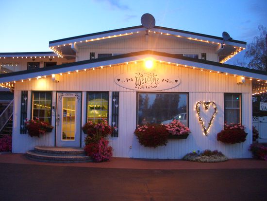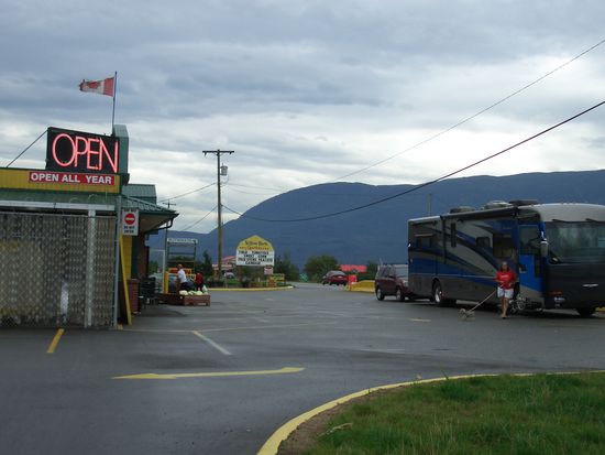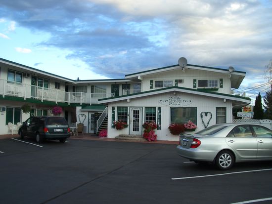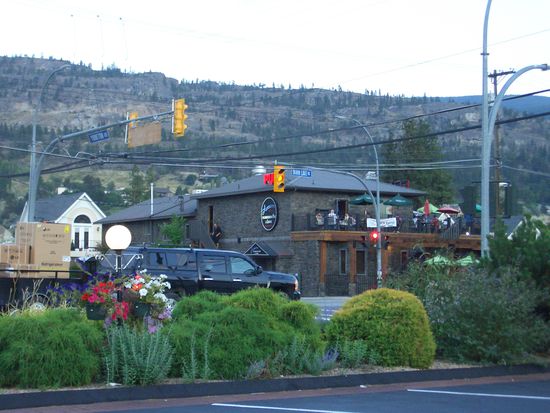 Gegen 18Uhr komme ich in die Stadt Penticton und beschliesse spontan, hier zu uebernachten und nicht mehr weiter bis nach Kelowna zu fahren, weil ich auf der gegenueberliegenden Strassenseite ein niedliches Motel entdecke und es langsam daemmrig wird. Ich mache im letzten Moment einen U-Turn a la carte und komme auf dem Parkplatz des Empire Motels zum Stehen. Es ist ein suesses Gebaeude in weiss und tannengruen und abends mit Beleuchtung. Etwas weiter entdecke ich am naechsten Morgen die Autowaescherei "Spit and Polish", grossartiger Name. Penticton liegt in einem Tal, huebsch umgeben von Bergen, die im Winter ein gutes Skiegebiet abgeben und in der unmittelbaren Naehe des Skaha-Lakes.