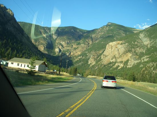 Bryan Adams begleitet mich zusammen mit einem neben der Strasse entlanglaufenden Fluss auf den ersten paar hundert Kilometern und wird dann von Ina Mueller abgeloest, meine CD funktioniert! Streckenweise ist man mutterseelenallein auf der Strasse, das ist ziemlich gewoehnungsbeduerftig.