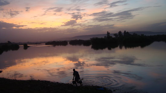 Am nächsten Tag ging es dann noch eine Station weiter nach Bamako; ein wenig mit der Hoffnung auch Mandy, Nils und Jimi wieder zu treffen. Als wir auf das Gelände des Hotels Djoliba einfahren sehen wir ihren orangefarbenen Bus bereits von weitem. Wir stören zwar gerade den Mittagsschlaf, doch die Wiedersehensfreude überwiegt. Die drei sind bereits einen Tag vor uns eingetroffen und man hat sich viel zu erzählen... So wird die Nacht mal wieder kurz, was aber nix macht, da man hier einen tollen Platz zum relaxen unterm Mangobaum hat. Gerade weit genug stadtauswärts um vom hektischen Treiben Bamakos nichts mitzubekommen, wunderschön am Niger gelegen
