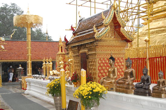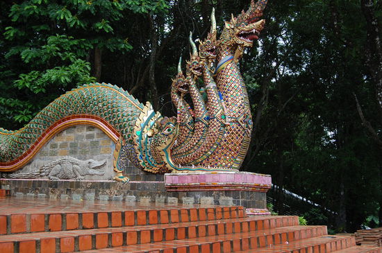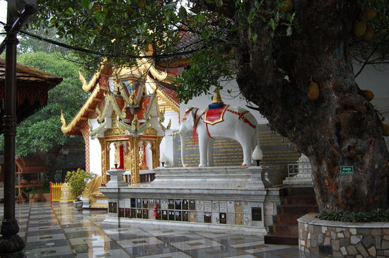 Als erstes sind wir zum Wat Doi Suthep, ca. 16km ausserhalb von Chiang Mai, auf einem Berg gelegen, gefahren. Leider hat es dort ganz doll geregnet, so dass wir nicht die Aussicht auf Chiang Mai geniessen konnten. Hier ein paar Fotos: