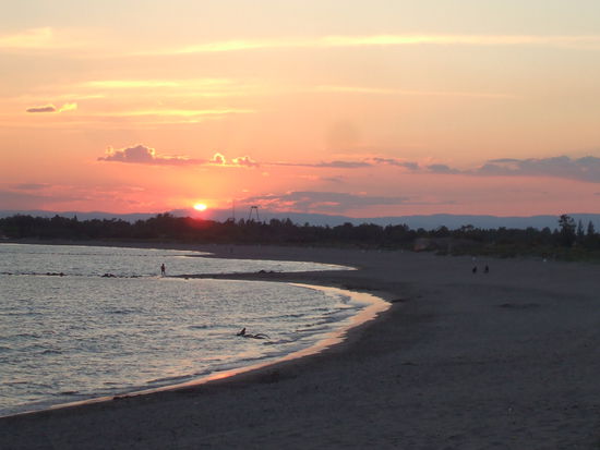 Am rechten Herault- Ufer fahren wir nach La Tamarissiere zum gleichnamigen Gemeindecampingplatz, der direkt am Meer liegt. Es gibt viele freie Plätze und wir lassen uns unter hohen Pinien im vorderen Platzteil in Strandnähe nieder.