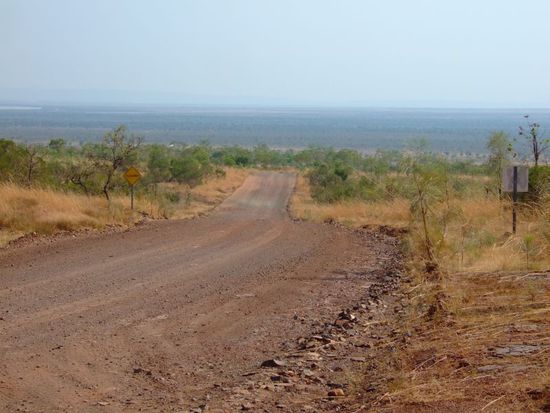 Auf dem Bild sieht man auch ein wenig, wieso dies hier der ROTE KONTINENT genannt wird - Die Strassen und auch die Landschaft ist in einen tiefroten Umhang gehüllt, der sich hier überall übers Land gelegt hatte